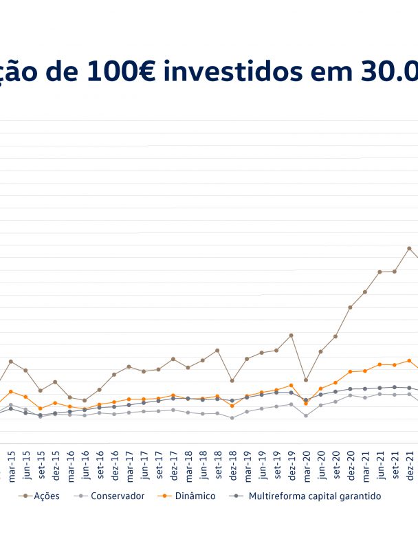 No gráfico abaixo, apresentamos as quatro opções de investimento do fundo de pensões da Volkswagen Autoeuropa desde a sua criação.
